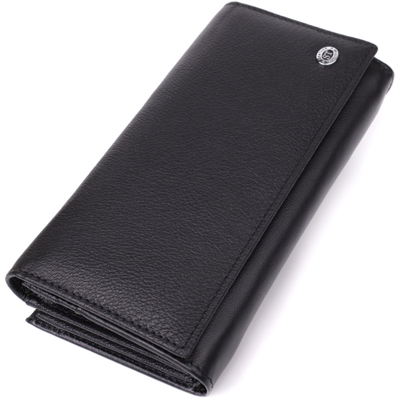 Функциональный женский кошелек на магнитах из натуральной кожи ST Leather Черный