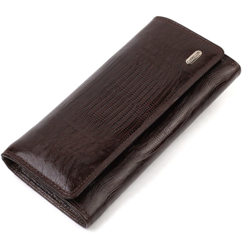 Кошелек женский из лакированной натуральной кожи с тиснением CANPELLINI Коричневый