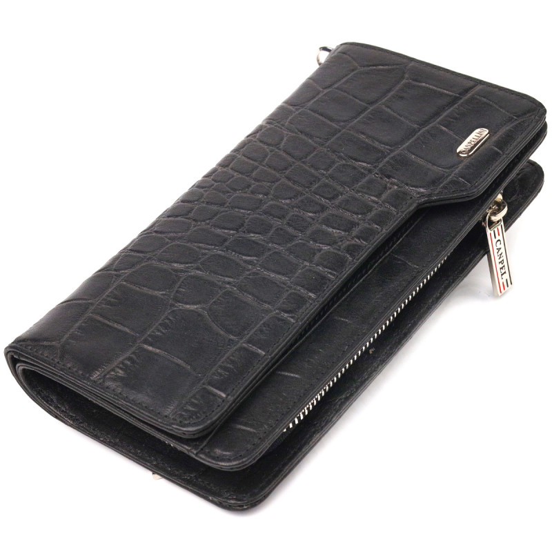 Качественное портмоне клатч из натуральной фактурной кожи CANPELLINI Черное