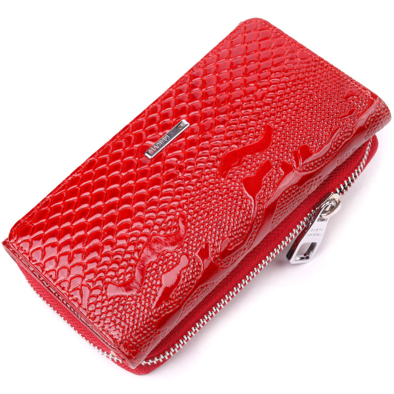 Яркое женское портмоне из лакированной фактурной кожи KARYA Красный