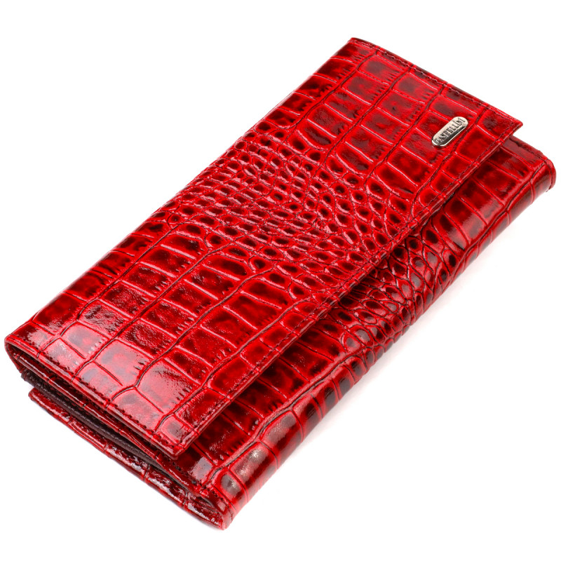 Яркое женское портмоне из натуральной кожи с тиснением под крокодила CANPELLINI Красный