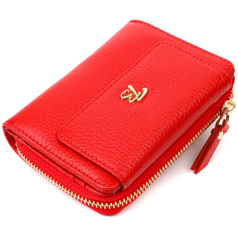 Яркий женский кошелек с вместительной монетницей на молнии из натуральной кожи Tony Bellucci Красный