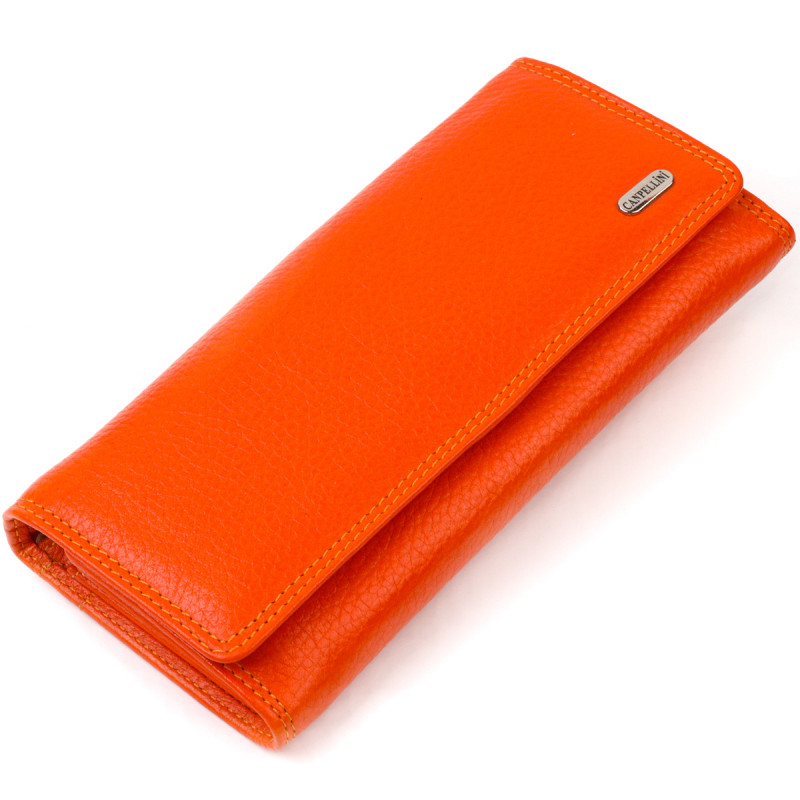 Яркий женский кошелек из натуральной зернистой кожи CANPELLINI Оранжевый