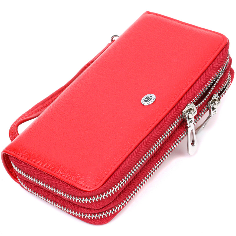 Яркий женский кошелек-клатч с двумя отделениями на молниях ST Leather Красный
