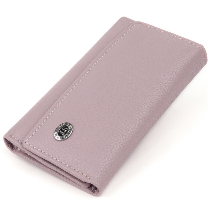 Стильный кошелек-ключница для женщин из кожи высокого качества яркого и оригинального лилового цвета. Лиловый цвет ключницы не останется незамеченным Аксессуар защищает ваши карманы от износа и дырок, которые появляются от ключей. Модель имеет 6 карабинов для стандартных ключей. А также основное глубокое отделение для купюр и кармашек на молнии для монет. Маленькие габариты аксессуара делают его еще более практичным и универсальным. Благодаря своим габаритам ключница помещается в карман или даже самую маленькую или бананку. Вы можете использовать ключницу как 2 в 1: кошелек и собственно ключница. Закрывается данная ключница на две кнопки. Прекрасно подойдет на подарок для женщины любого возраста. Упаковано в фирменную коробку белого цвета.