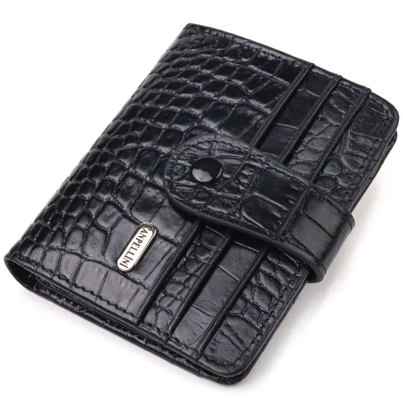 Компактный кошелек из натуральной кожи с тиснением под крокодила CANPELLINI Черный
