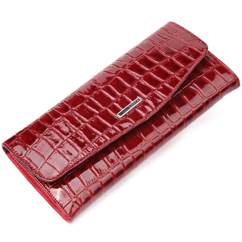 Красивый женский кошелек с клапаном из фактурной кожи под крокодила KARYA Красный