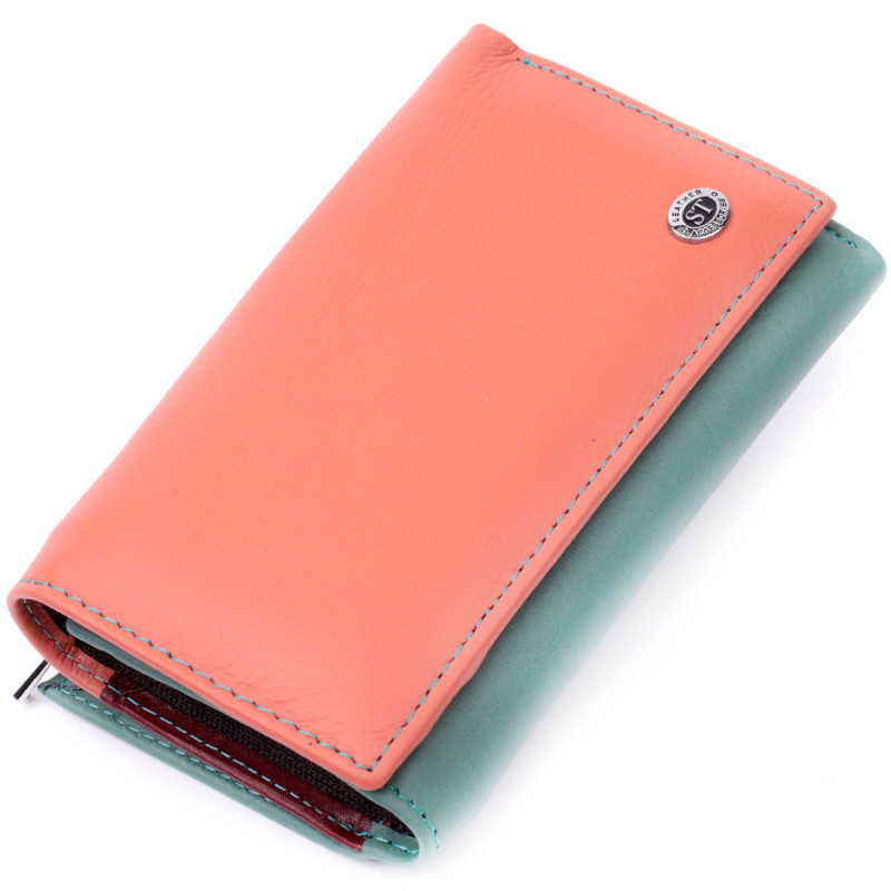 Красивый женский кожаный кошелек в три сложения ST Leather Разноцветный