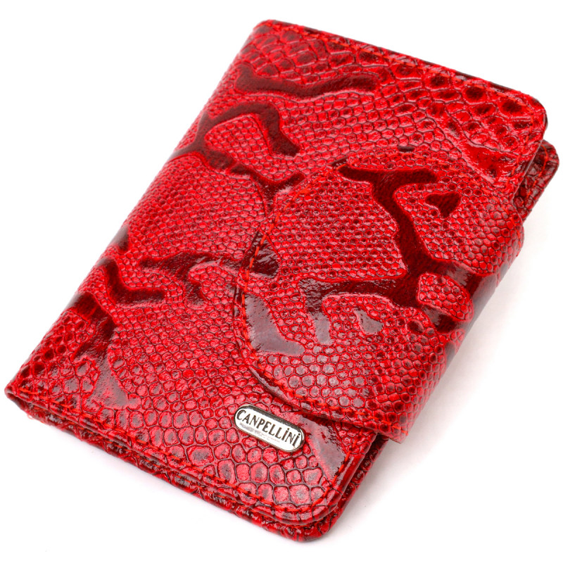 Лакированное женское портмоне среднего размера из натуральной кожи с тиснением под змею CANPELLINI Красное
