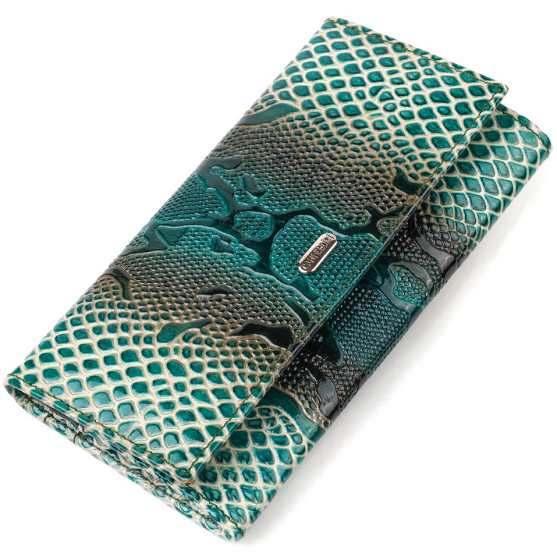 Лакированный кошелек для женщин из натуральной фактурной кожи с тиснением под рептилию CANPELLINI Зеленый