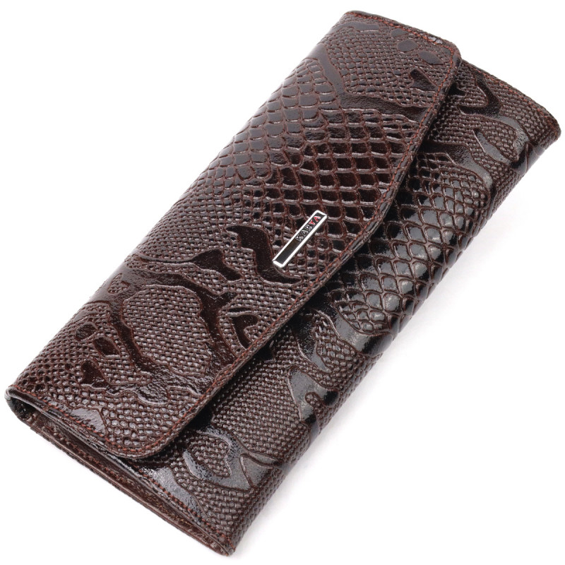 Лакированный женский кошелек с клапаном из фактурной кожи под рептилию KARYA Коричневый