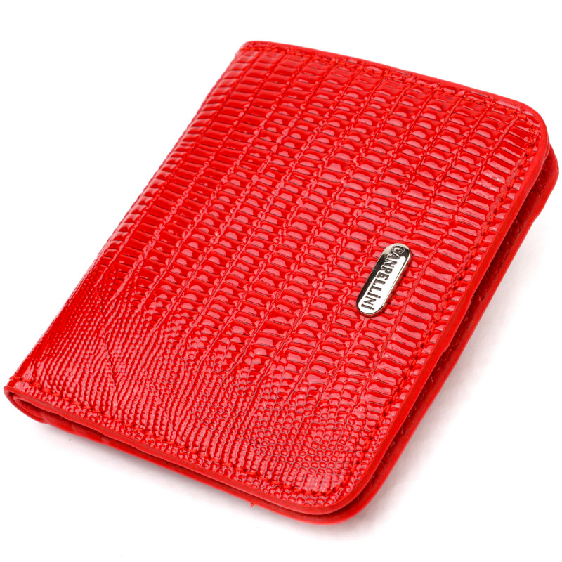 Лакированный женский кошелек небольшого размера из натуральной фактурной кожи CANPELLINI Красный