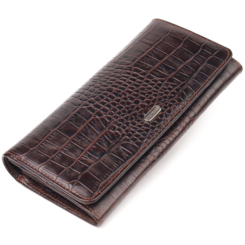 Вместительный кошелек для женщин из натуральной фактурной кожи с тиснением под крокодила CANPELLINI Коричневый