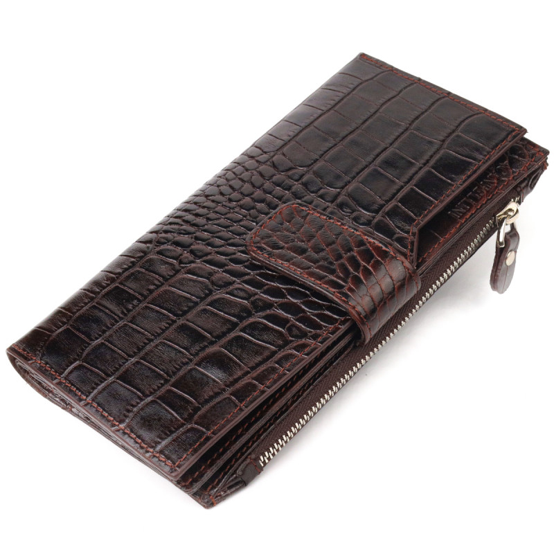 Вместительный кошелек из натуральной кожи с тиснением под крокодила CANPELLINI Коричневый