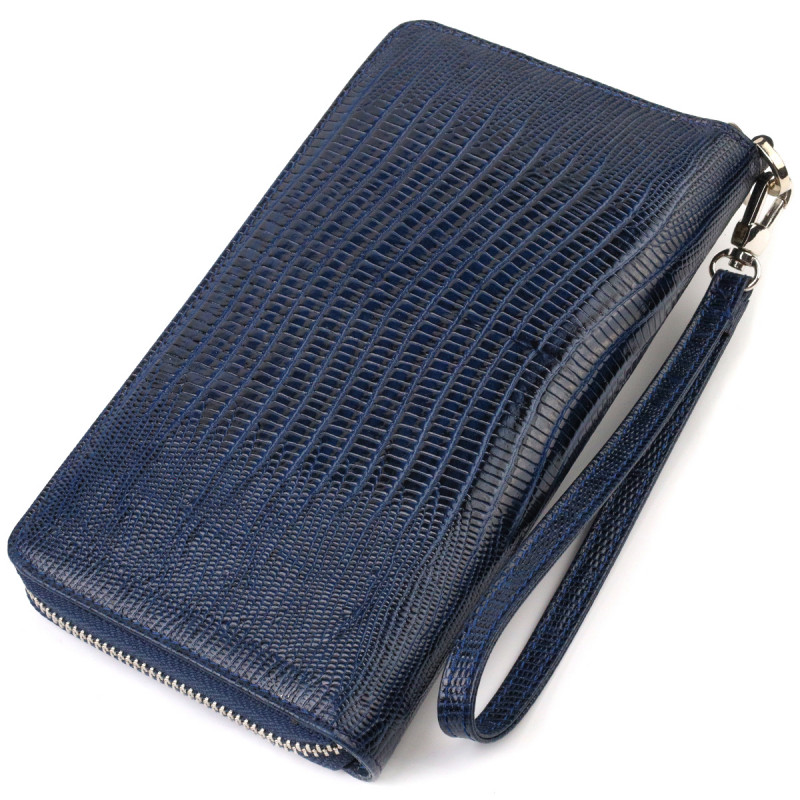 Вместительный клатч для женщин из натуральной кожи с тиснением CANPELLINI Синий