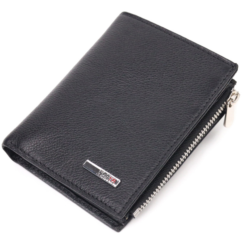 Вместительный вертикальный небольшой кожаный кошелек KARYA Черный