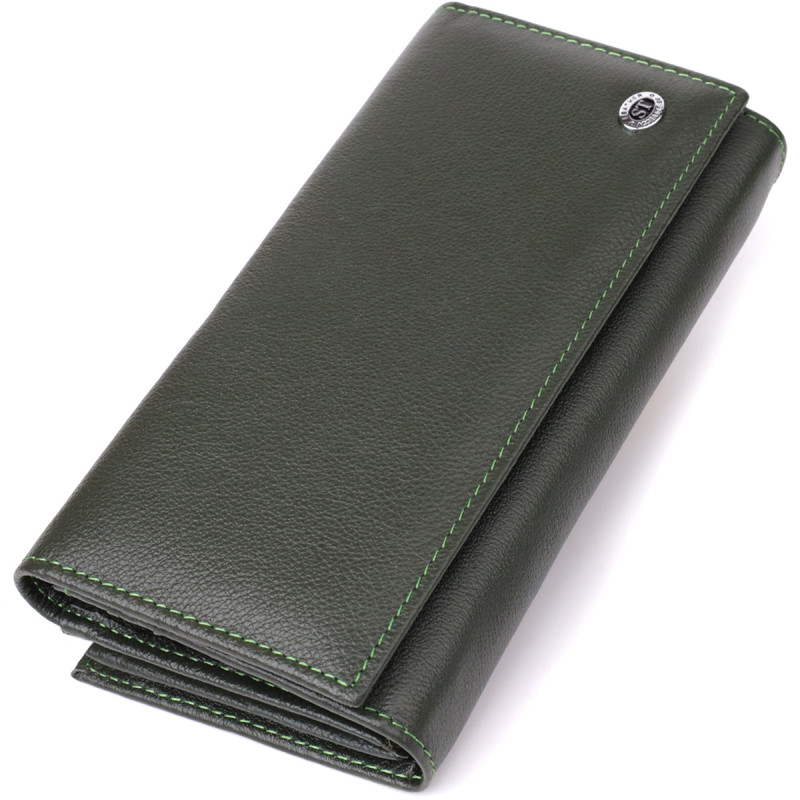 Вместительный женский кошелек на магнитах из натуральной кожи ST Leather Зеленый
