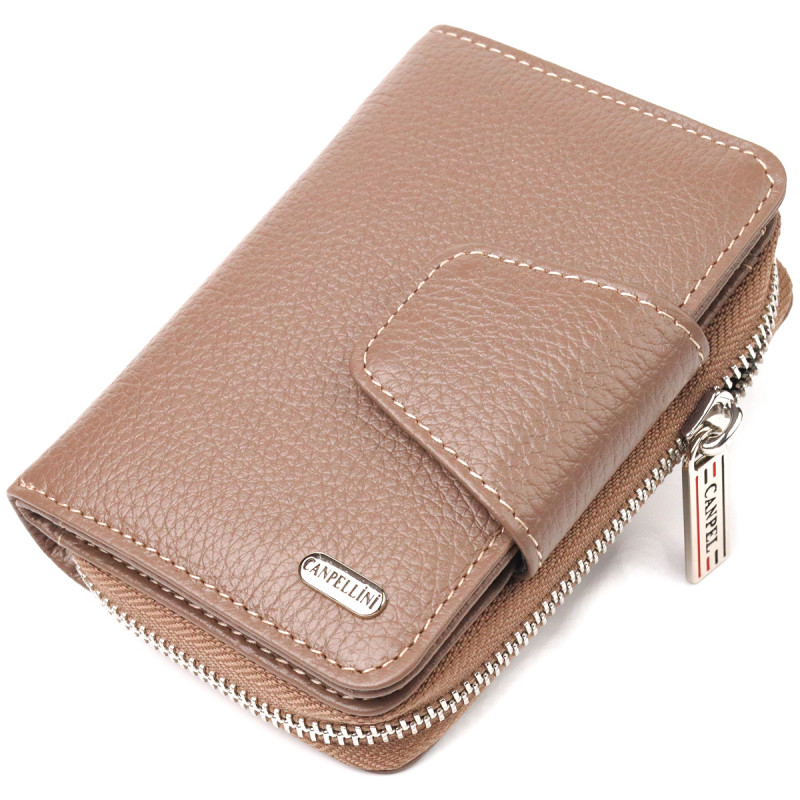 Надежное вертикальное портмоне для женщин с монетницей на молнии из натуральной кожи флотар CANPELLINI Бежевое