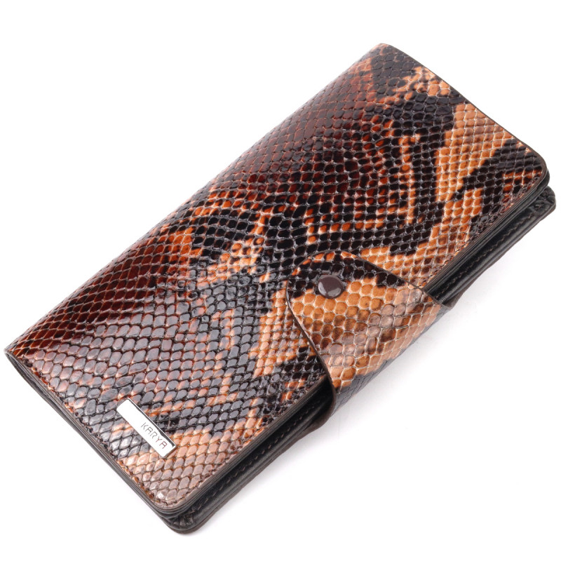 Надежное женское портмоне из натуральной фактурной кожи под змею KARYA Коричневый