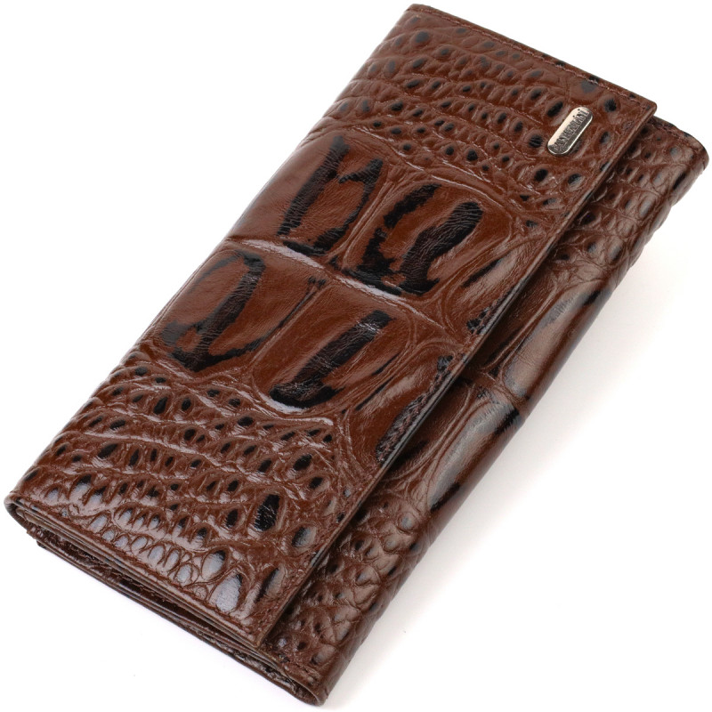 Оригинальное женское портмоне из натуральной кожи с тиснением под крокодила CANPELLINI Коричневое