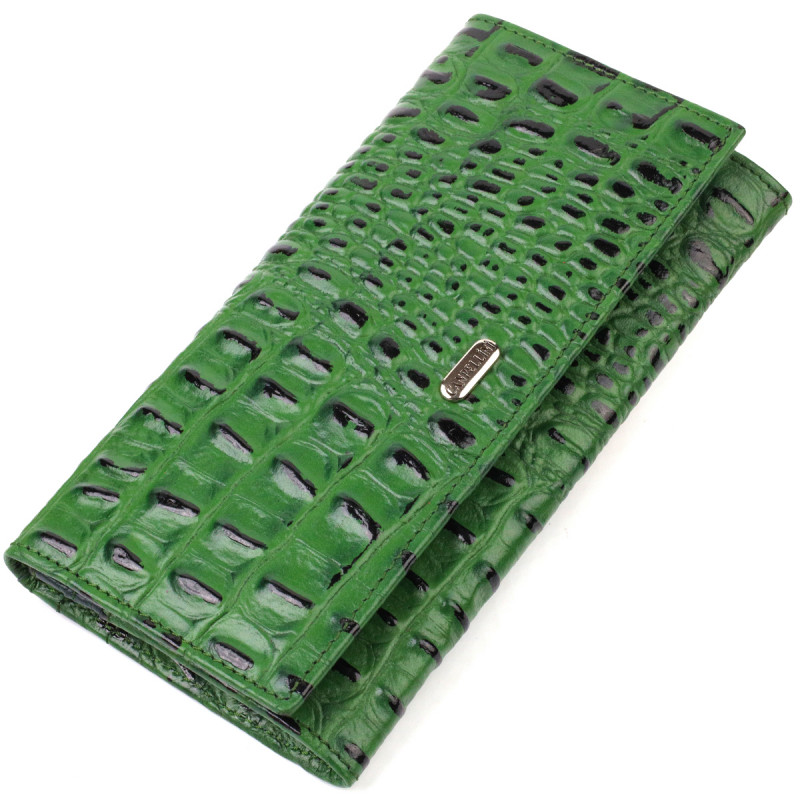 Оригинальный кошелек для женщин из натуральной фактурной кожи с тиснением под крокодила CANPELLINI Зеленый