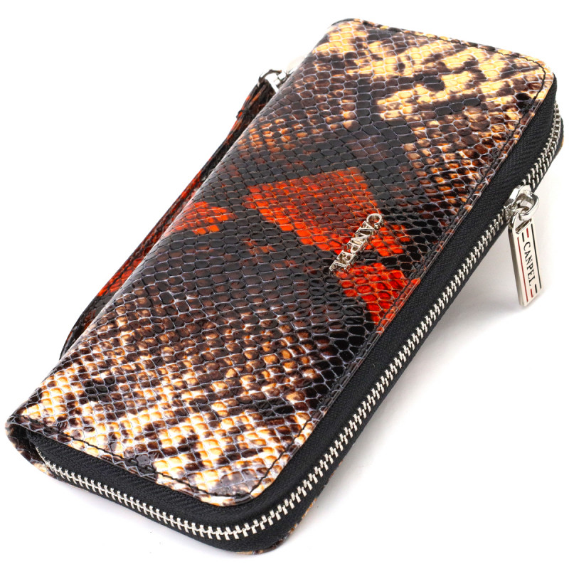 Оригинальный кошелек для женщин из натуральной фактурной кожи с тиснением под змею CANPELLINI Разноцветный