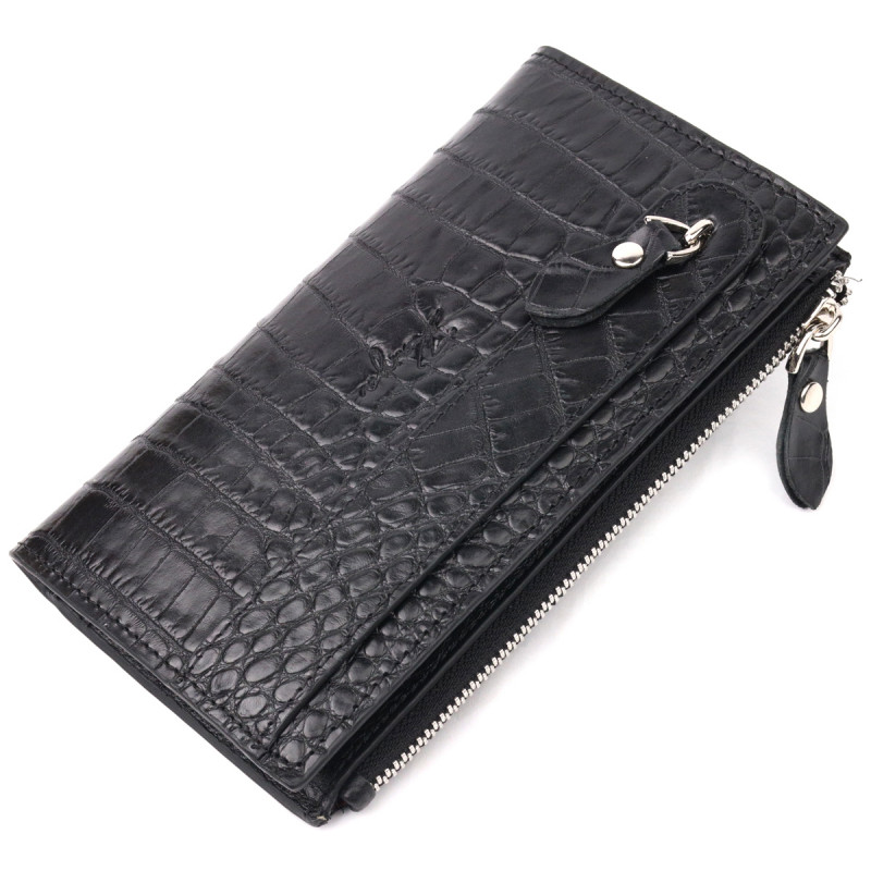Оригинальный складной бумажник из натуральной кожи с тиснением под крокодила KARYA Черный