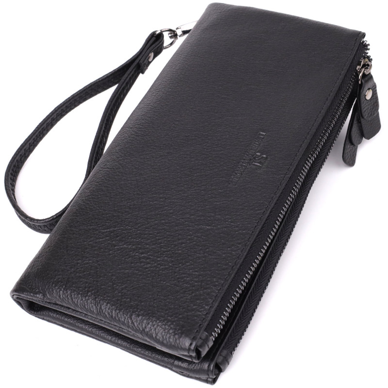 Практичный кожаный кошелек на три отделения ST Leather Черный