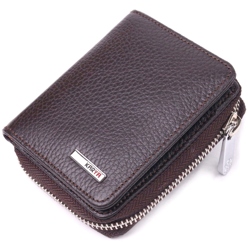 Практичный женский кошелек с монетницей на молнии из натуральной кожи KARYA Коричневый