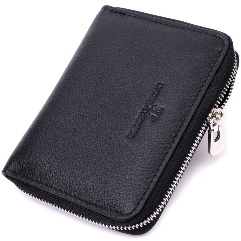 Кожаный кошелек для женщин на молнии с тисненым логотипом производителя ST Leather Черный