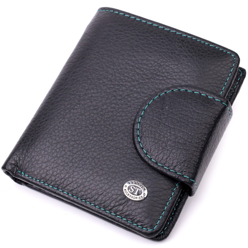 Кожаный стильный кошелек с монетницей снаружи для женщин ST Leather Черный