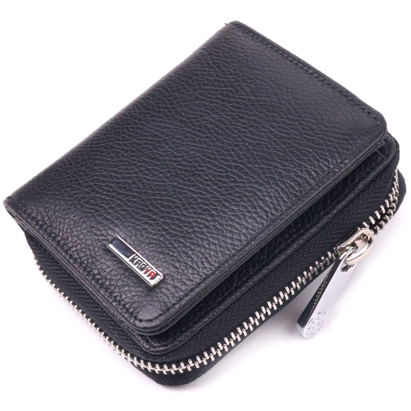 Стильный женский кошелек с монетницей на молнии из натуральной кожи KARYA Черный