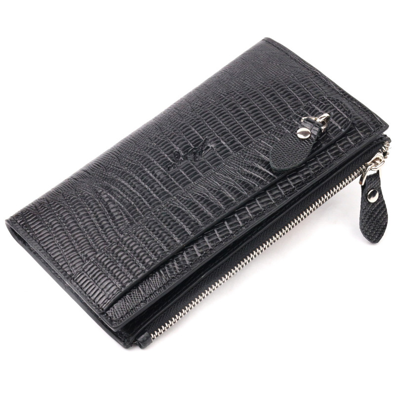 Современный складной бумажник из натуральной фактурной кожи KARYA Черный