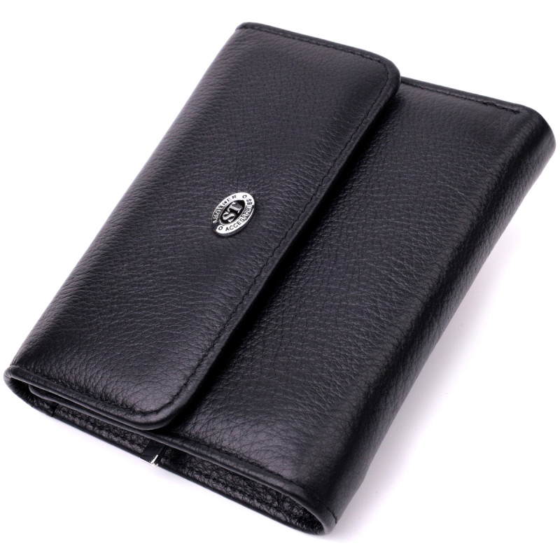 Симпатичный женский кошелек с монетницей из натуральной кожи ST Leather Черный