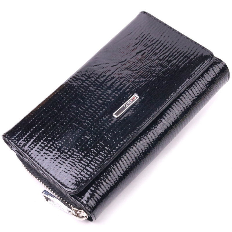 Интересное женское портмоне из лакированной фактурной кожи KARYA Черный