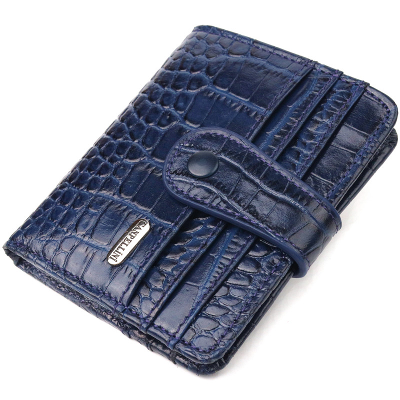 Интересный кошелек из натуральной кожи с тиснением под крокодила CANPELLINI Синий