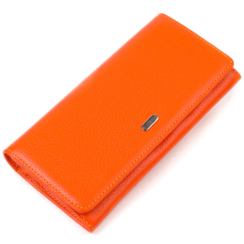 Большой женский кошелек из натуральной зернистой кожи CANPELLINI Оранжевый