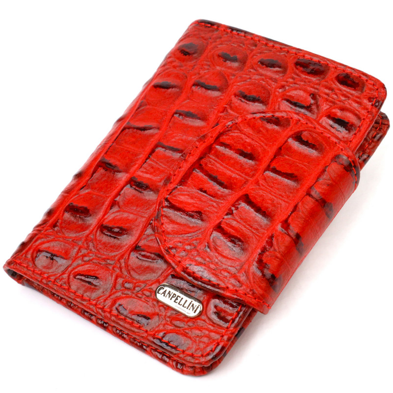 Женское фактурное портмоне среднего размера из натуральной кожи с тиснением под крокодила CANPELLINI Красное