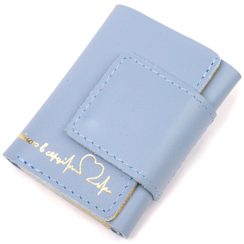 Женское кожаное портмоне в три сложения комби двух цветов Сердце GRANDE PELLE Желто-голубое