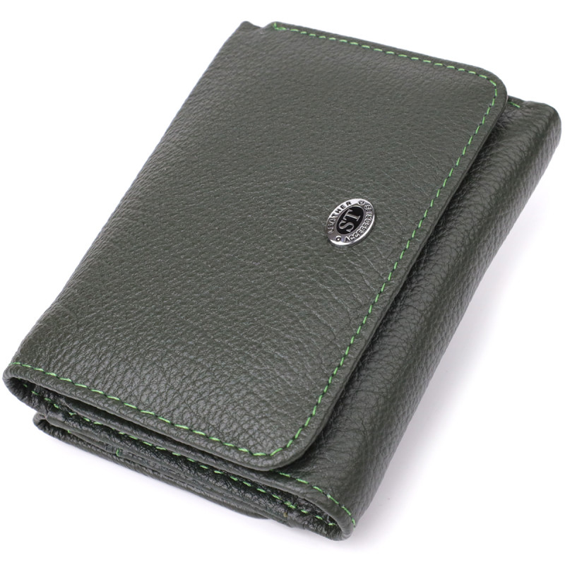 Женский кошелек компактного размера из натуральной кожи ST Leather Зеленый