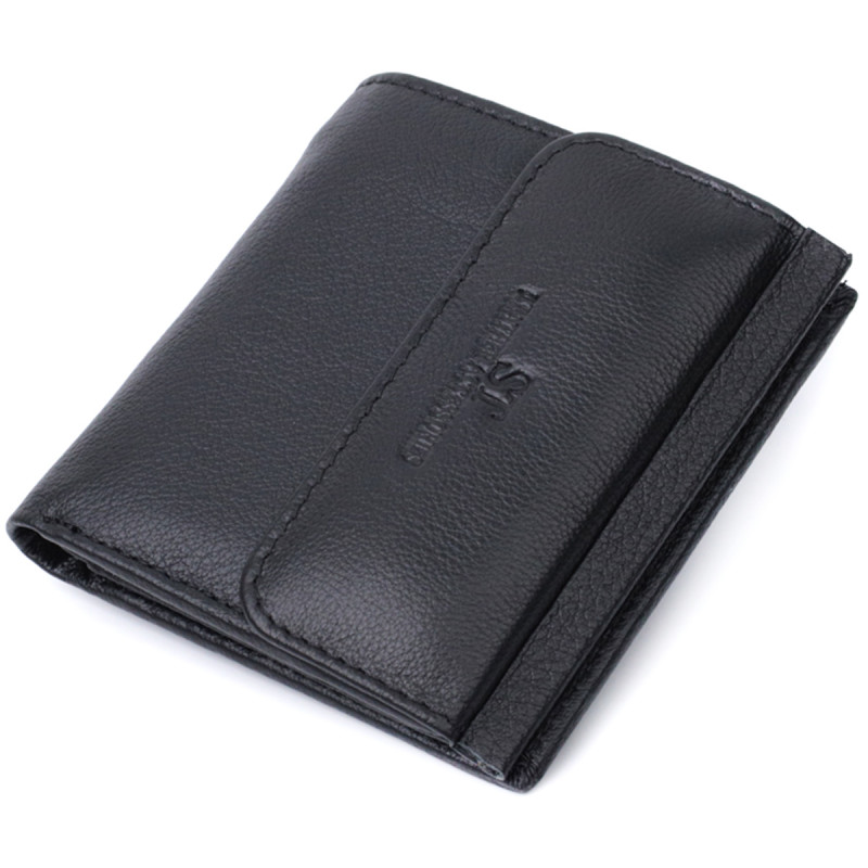Женский кошелек среднего размера из монетницей снаружи из натуральной кожи ST Leather Черный