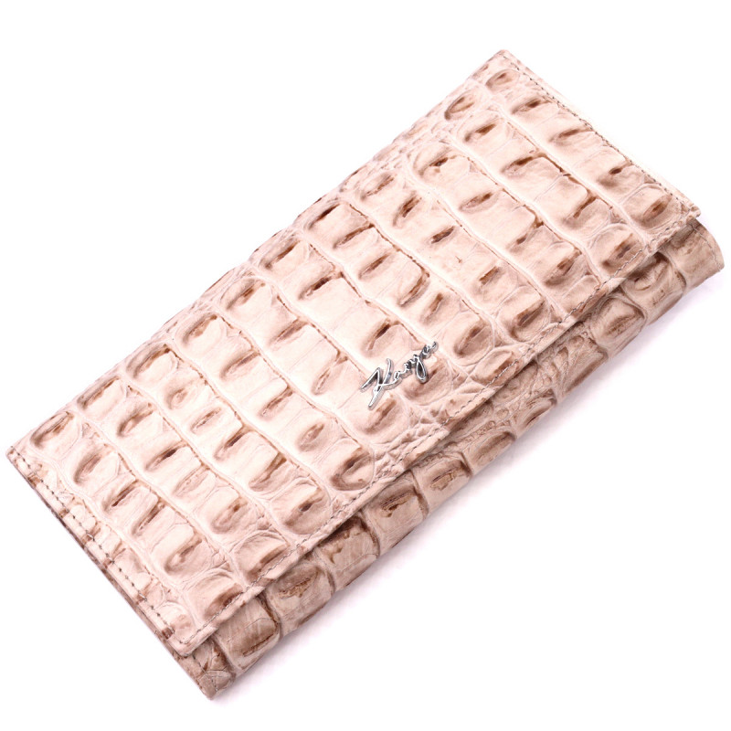 Горизонтальный женский кошелек из натуральной кожи с тиснением под крокодила KARYA Бежевый