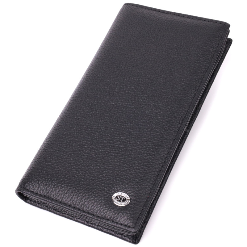 Женский вертикальный кошелек на магнитах из натуральной кожи ST Leather Черный