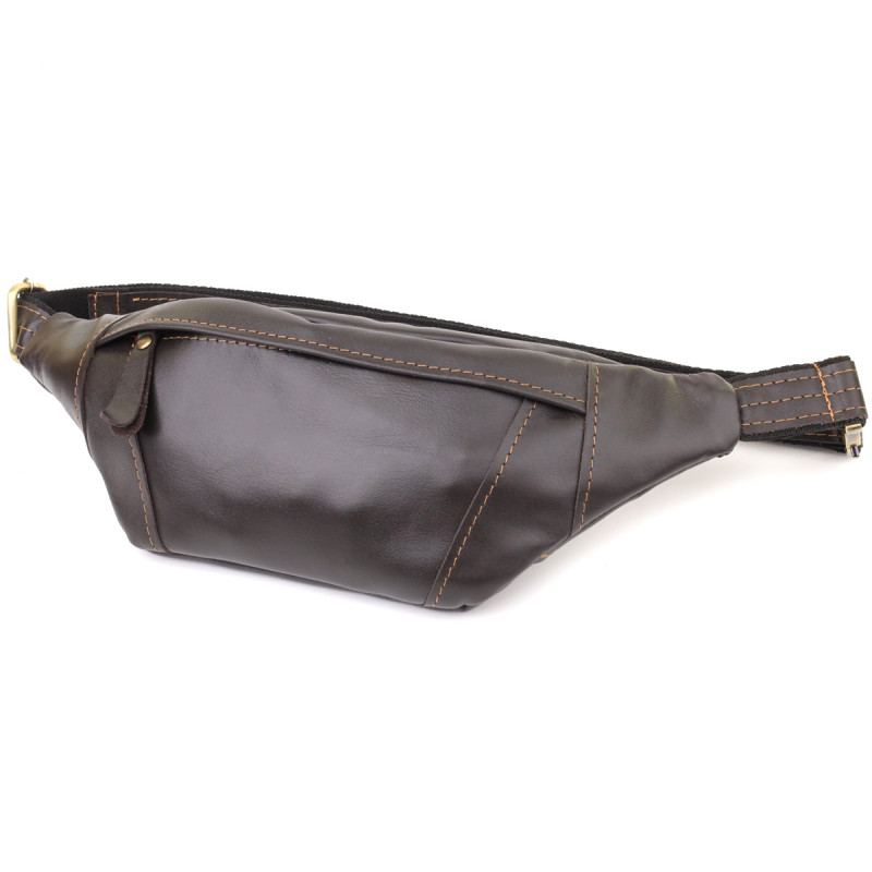 Мужская сумка-бананка компактного размера из натуральной гладкой кожи Shvigel Коричневый