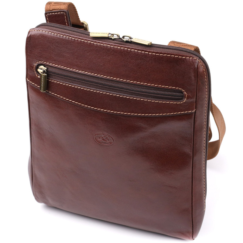 Мужская сумка через плечо из гладкой натуральной кожи Tony Perotti _ (- moro) Коричневый