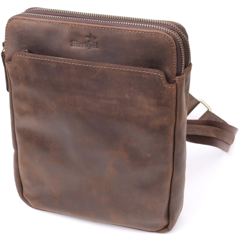 Мужская сумка через плечо из винтажной натуральной кожи Shvigel _ Коричневый