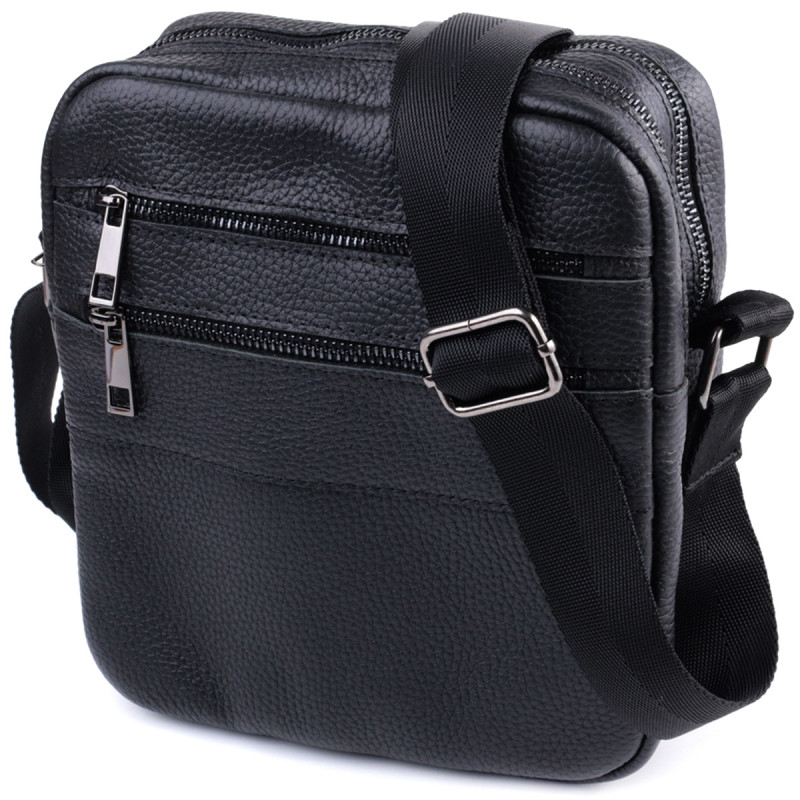Мужская сумка мессенджер из зернистой натуральной кожи Shvigel Черная