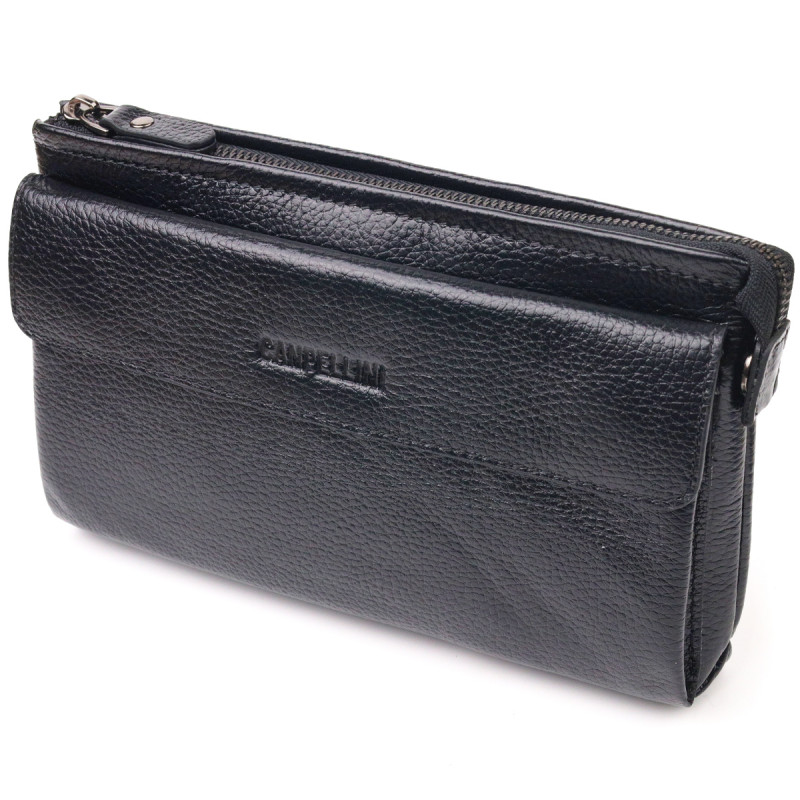 Мужской стильный клатч из натуральной кожи CANPELLINI Черный