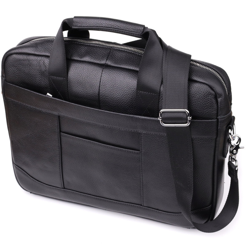 Стильный и функциональный кожаный портфель черного цвета, выполненный из натуральной кожи с прочным каркасом, идеально подойдет для деловых людей, ценящих комфорт и порядок. Сумка надежно сохраняет форму и обеспечивает защиту содержимого, включая ноутбук до 15 дюймов и документы формата А4.