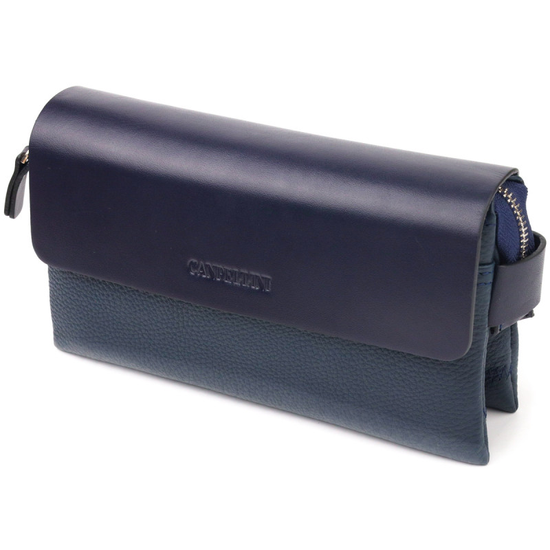 Добротный мужской клатч из натуральной комбинированной кожи CANPELLINI Синий
